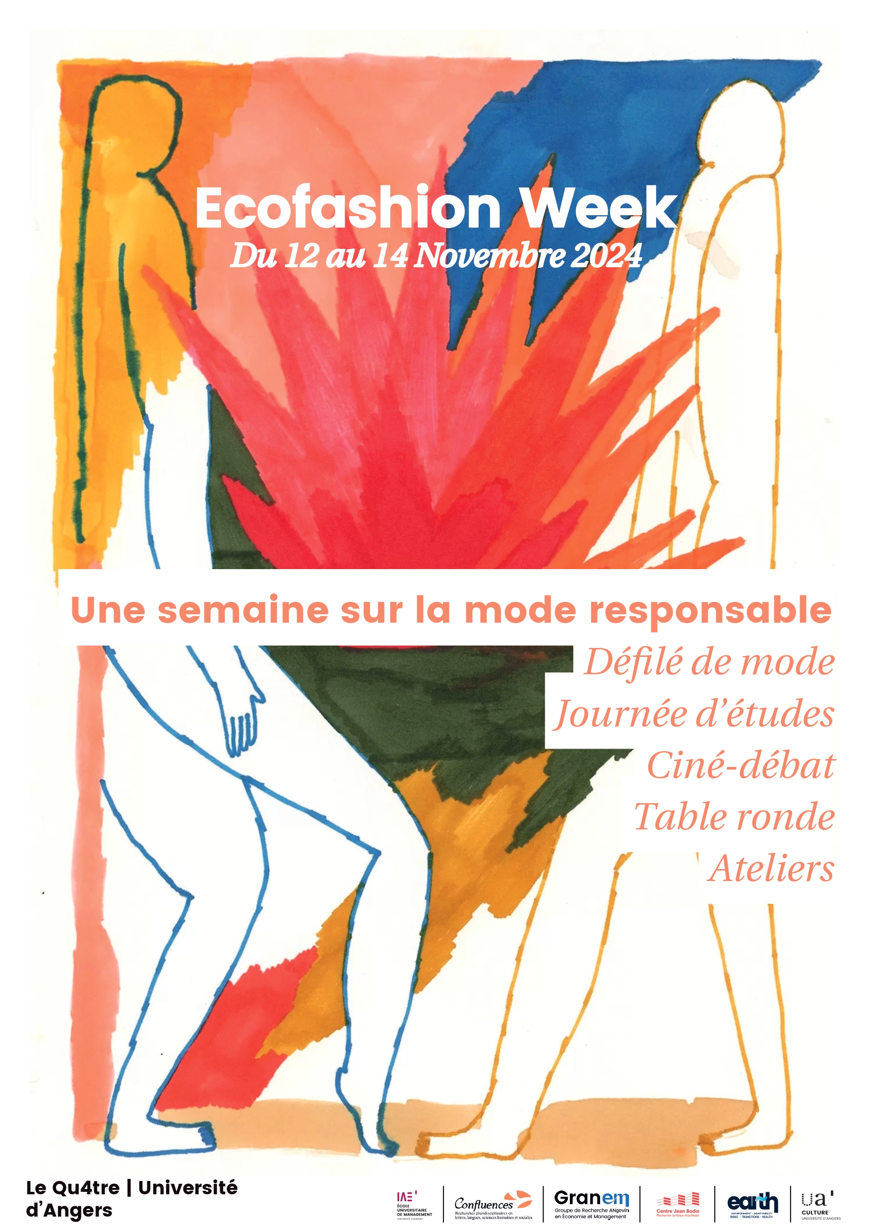Jeudi 14 novembre 2024, à 19h30, rejoignez-nous pour une présentation de tenues entièrement composées de vêtements de seconde main par les étudiants du Master Direction de Projet - Parcours Luxe et Arts de la France (ESTHUA) et de la LP Management de la Mode (LLSH - Cholet). Cet évènement aura lieu dans le Forum du Qu4tre (UA Culture), 4 allée François Mitterrand à Angers. Accueil dès 19h00.